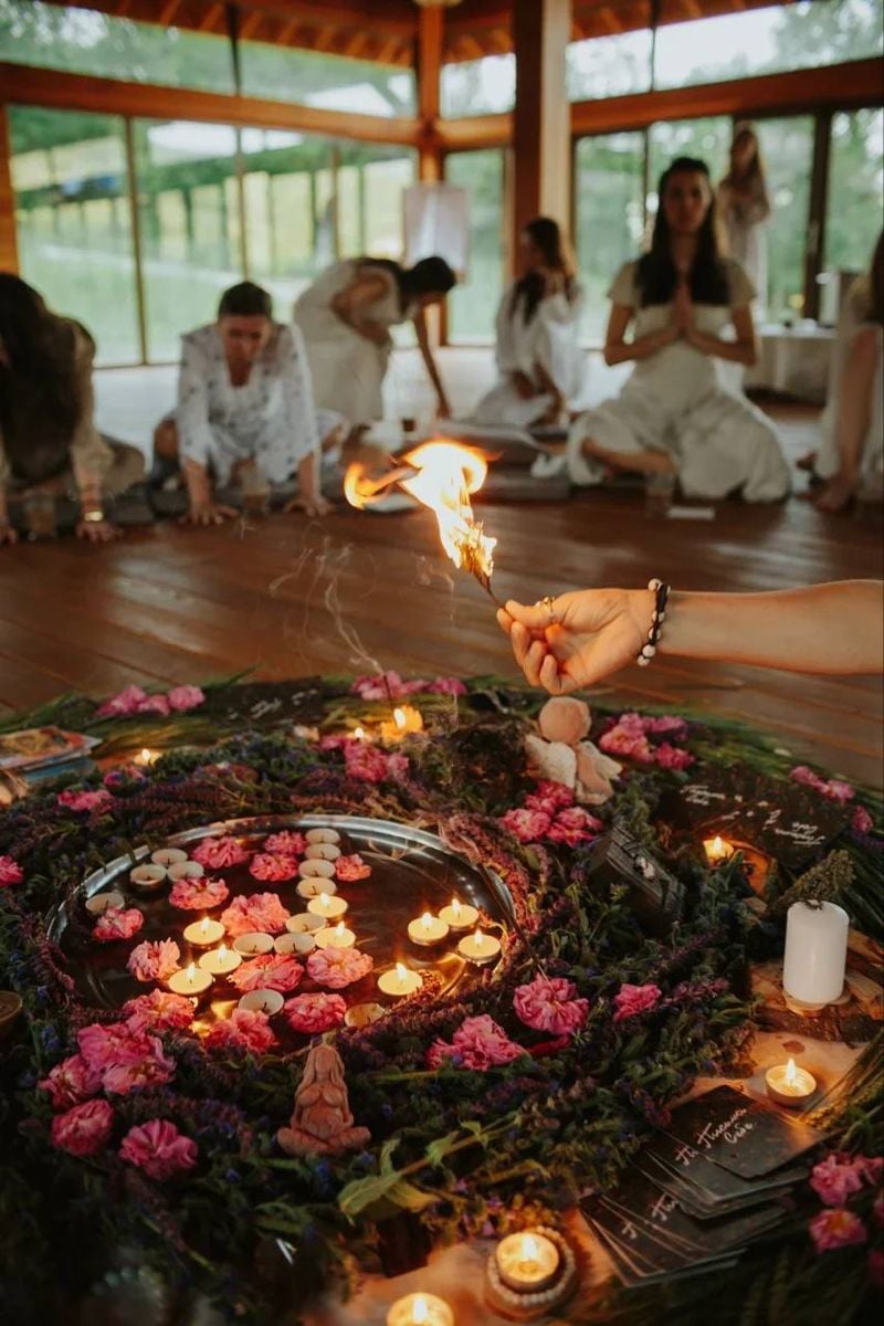 La cérémonie est accompagnée de moments de partage, de méditation, d’ancrage, de pratiques intuitives et de temps de parole, permettant à chacune de se reconnecter à ses ressentis et à ses intentions.